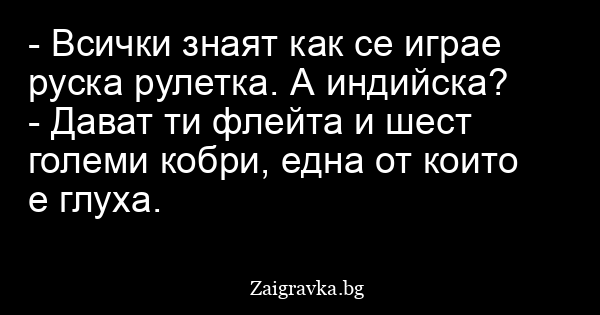 - Дават ти флейта и шест големи кобри, една от които е глуха.