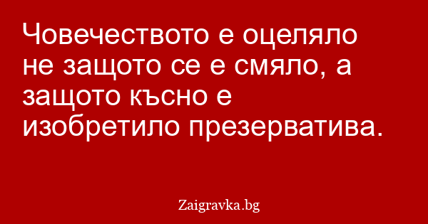 Човечеството е оцеляло не защото се е смяло, а защото късно е изобретило презерватива.