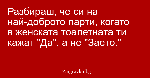 Разбираш, че си на най-доброто парти, когато в женската тоалетната ти кажат "Да", а не "Заето."