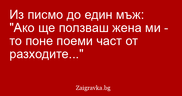 "Ако ще ползваш жена ми - то поне поеми част от разходите..."