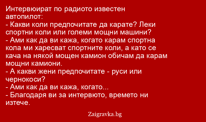 - Ами как да ви кажа, когато карам спортна кола ми харесват спортните коли, а като се кача на някой мощен камион обичам да карам мощни камиони.