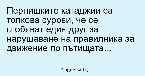 Пернишките катаджии са толкова сурови, че се глобяват един друг за нарушаване на правилника за движение по пътищата...