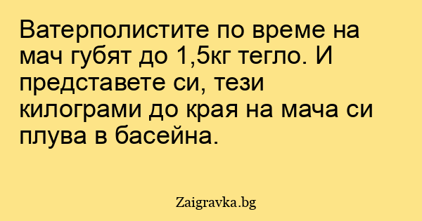 Ватерполистите по време на мач губят до 1,5кг тегло. И представете си, тези килограми до края на мача си плува в басейна.