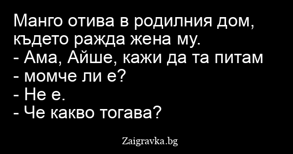 Манго решил да си купува слипове. Купил си той слипове, но като ги видял Малкия Манго и той поискал. Купили и на малкия Манго слипове, но не знаел как да ги обува и попитал баща си: