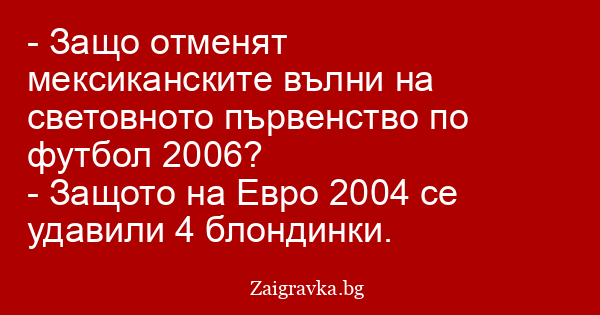 - Защото на Евро 2004 се удавили 4 блондинки.