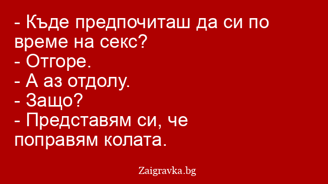 - Ами, госпожо, представете си, че по улицата вървят две жени и ядат сладолед. Едната го ближе, а другата го смуче. Коя от двете е омъжена?