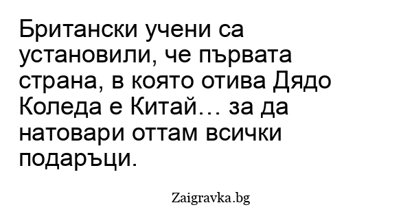Британски учени са установили, че първата страна, в която отива Дядо Коледа е Китай… за да натовари оттам всички подаръци.