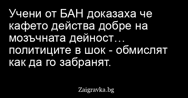 Учени от БАН доказаха че кафето действа добре на мозъчната дейност… политиците в шок - обмислят как да го забранят.