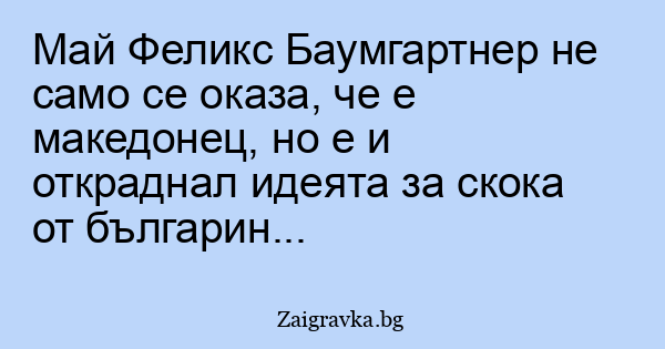Май Феликс Баумгартнер не само се оказа, че е македонец, но е и откраднал идеята за скока от българин...