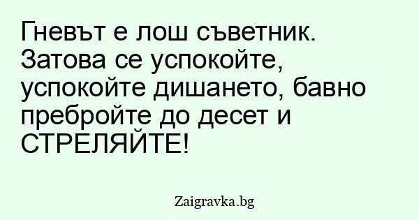 Затова се успокойте, успокойте дишането, бавно пребройте до десет и СТРЕЛЯЙТЕ!