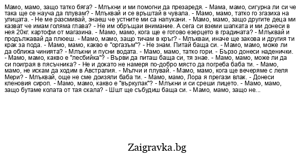 - Мамо, мамо, защо бутаме колата от тая скала?