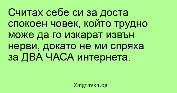 Считах себе си за доста спокоен човек, който трудно може да го изкарат извън нерви, докато не ми спряха за ДВА ЧАСА интернета.