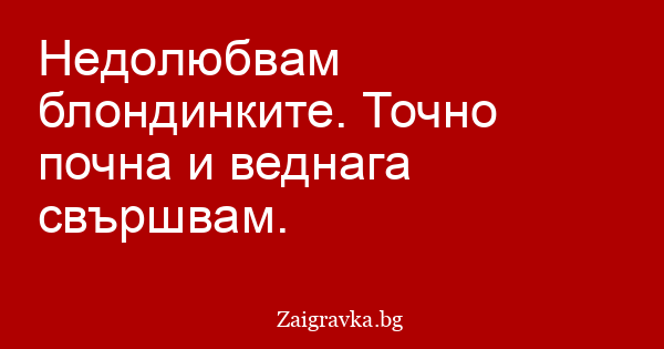 Недолюбвам блондинките. Точно почна и веднага свършвам.
