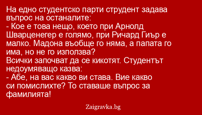 Всички започват да се кикотят. Студентът недоумяващо казва: