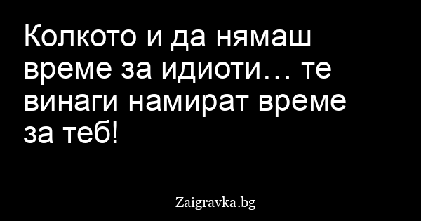 Колкото и да нямаш време за идиоти… те винаги намират време за теб!
