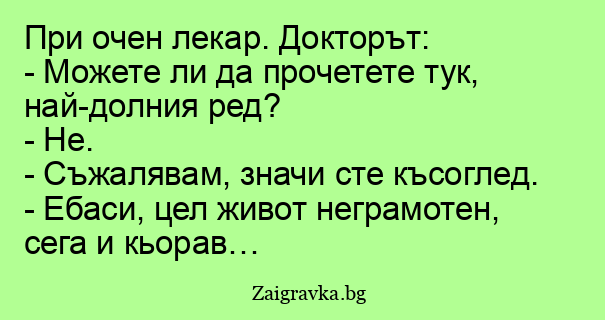 - Ебаси, цел живот неграмотен, сега и кьорав…