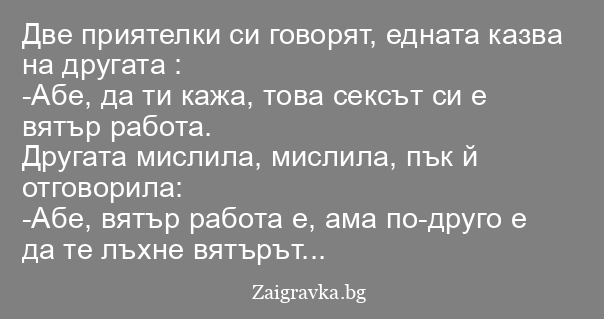 -Абе, да ти кажа, това сексът си е вятър работа.