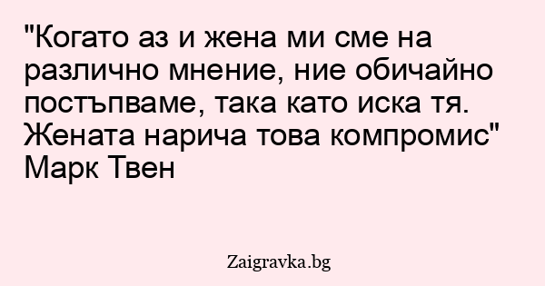 "Кoгато аз и жена ми сме на различно мнение, ние обичайно постъпваме, така като иска тя. Жената нарича това компромис"